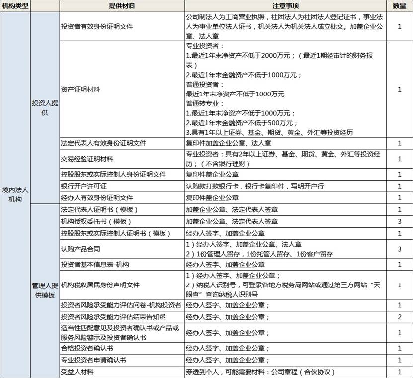 基金认购所需材料